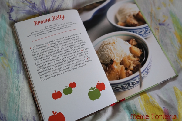Die Aufmachung von dem Buch ist richtig niedlich. Überall finden sich die gezeichneten Äpfel wie beim Inhaltsverzeichnis. Da das Buch nicht in Kategorien unterteilt ist, finde ich es prima, dass das Inhaltsverzeichnis zu Beginn des Buches steht. Von Apfeltarte aus der Normandie über Apfelchutney, Herzhafter Apfelkuchen, Zimt-Apfel-Eis bis zu Apfeltörtchen ist für jeden Geschmack etwas dabei. Und es beschränkt sich nicht auf Backrezepte. Eigentlich bilden die nur einen kleinen Teil des Büchleins. Wenn jetzt die Tage wieder kühler werden, werde ich unbedingt auch mal den Apfeltee ausprobieren. Der hört sich sehr gut an.