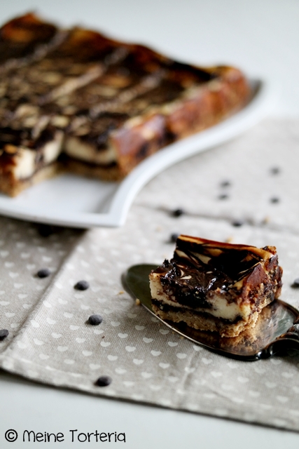 Damit das Lesen nicht zu lange dauert, mache ich Euch schon mal Appetit auf das Rezept, das ich aus dem Buch „Cheesecakes, Pies & Tartes“ von Cynthia Barcomi ausprobiert habe. Schon der Name „Chocolate Swirl Cheesecake Bars“ klingt doch einfach köstlich. Und das war der Kuchen auch. :)