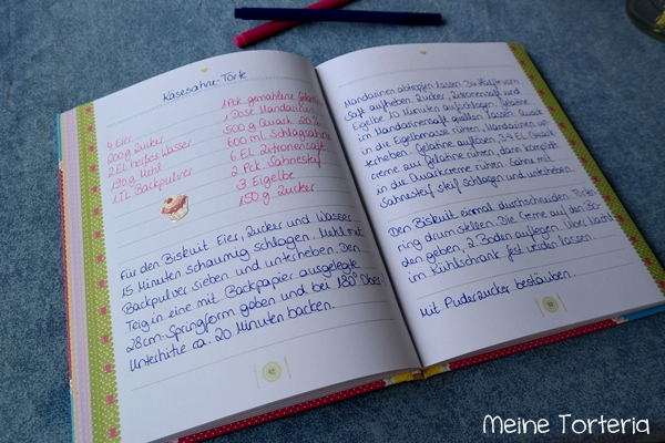 Die Größe ist echt praktisch – nicht zu klein, dass man beim Schreiben quetschen müsste. Und Rezepte einkleben geht auch, wie Ihr sehen könnt.