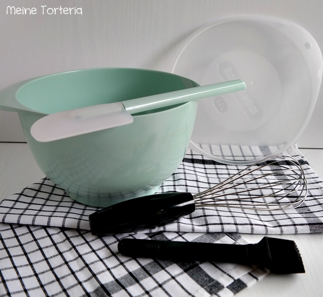 Die Rührschüssel „Magrethe“ mit 3 l Inhalt und Deckel war mehrmals in der Spülmaschine oder wurde von Hand gespült. Ich habe darin Erdbeer-Mascarpone-Creme angerührt, Teig für eine Tarte geknetet, Käsekuchencreme gerührt, Brotteig angesetzt (mit dem passenden Deckel) und – quasi als Härtetest – Möhrensalat drin zubereitet und über Nacht aufbewahrt. Dabei habe ich nicht nur den Teigschaber benuttzt, Nein auch Schneebesen und der elektrische Handrührer kamen zum Einsatz.