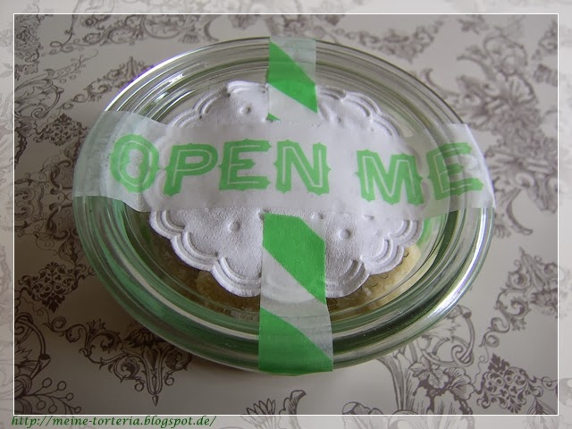 In paar habe ich für die Tortenträumerin Sandra – klick – eingepackt, damit sie auch mal probieren kann! Das Glas war eh noch von ihr hier. Jetzt bekommt sie es gefüllt wieder zurück. Ist doch auch nicht schlecht!?! Dekoriert habe ich „mit freundlicher Hilfe“ von Ikea. Hihi.