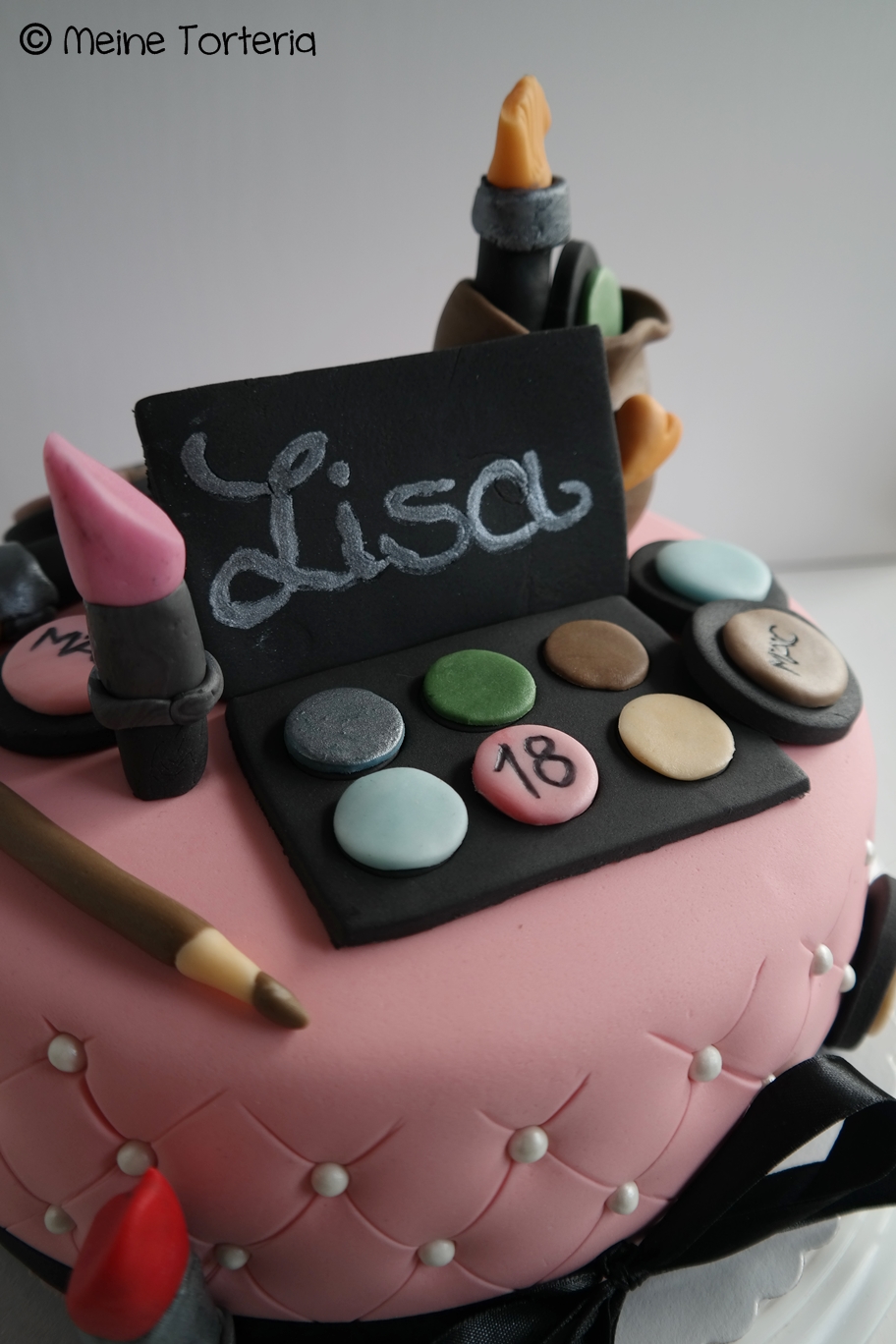 Eigentlich sollte es die heutige Torte schon vor einem Jahr geben – nur bin ich da leider krank geworden. Dieses Jahr wurde Lisa 18 und da war die Torte fällig, die sie sich gewünscht hat. Auf die Torte musste Makeup – ganz viel Makeup. :)