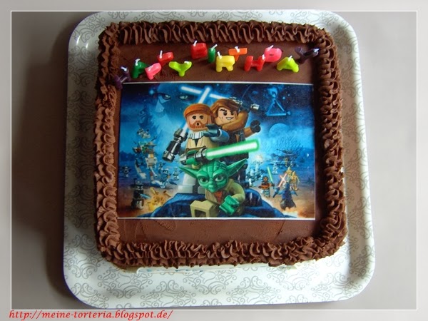 Die Kinder einer lieben Freundin sollten in diesem Jahr keine „richtigen“ Geschenke zum Geburtstag bekommen, sondern auch mal eine Torte von mir. Also habe ich mich mit der Mama der beiden hin gesetzt und ausgetüftelt, was es werden sollte. Voraussetzungen: Möglichst wenig Fondant, ein heller Kuchen mit Schokostückchen (oder alternativ Nusskuchen) und ein Bild von Lego Star Wars.