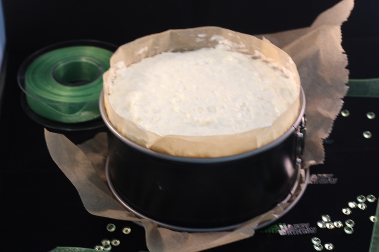 Legt eine Kuchenform mit Backpapier aus und kleidet auch den Rand mit Backpapier aus. Nun könnt ihr die Masse in die Backform geben, feste andrücken und ab in den Kühlschrank