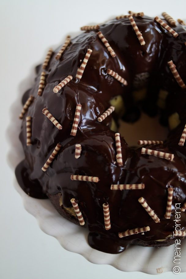 Den Kuchen ca. 60 – 70 Minuten backen (bei mir waren es exakt 70 Minuten). Den Kuchen in der Form abkühlen lassen und dann stürzen. Für mindestens 5 – 6 Stunden in den Kühlschrank stellen (oder über Nacht), damit der Cheesecakekern fest werden kann.